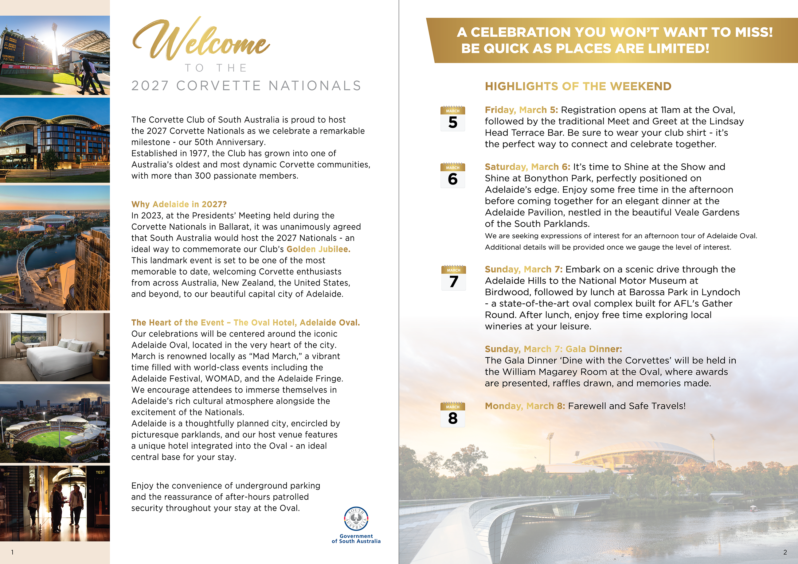 Adelaide oval accommodation link - https://www.ovalhotel.com.au/private-page/corvette-nationals-adelaide-2027/