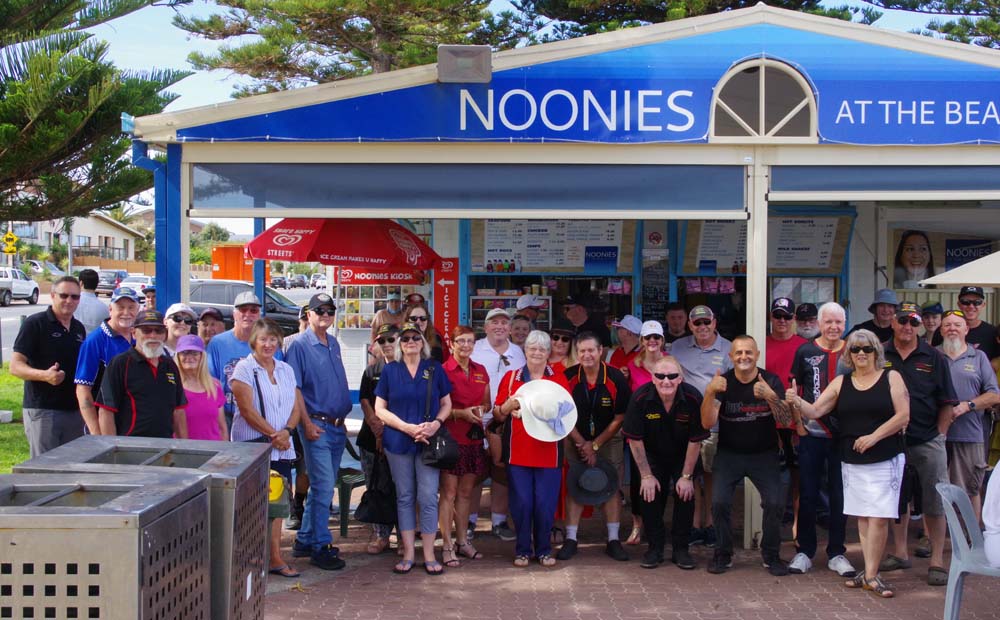 It was a warm sunny morning and the carpark on the beach was full, which was rather inconvenient as that was our meeting spot for the cruise. Luckily Pete and Lynda turn up early everywhere and he had all the cars parked up the nearest side street as everyone gathered for a coffee at Noonies.