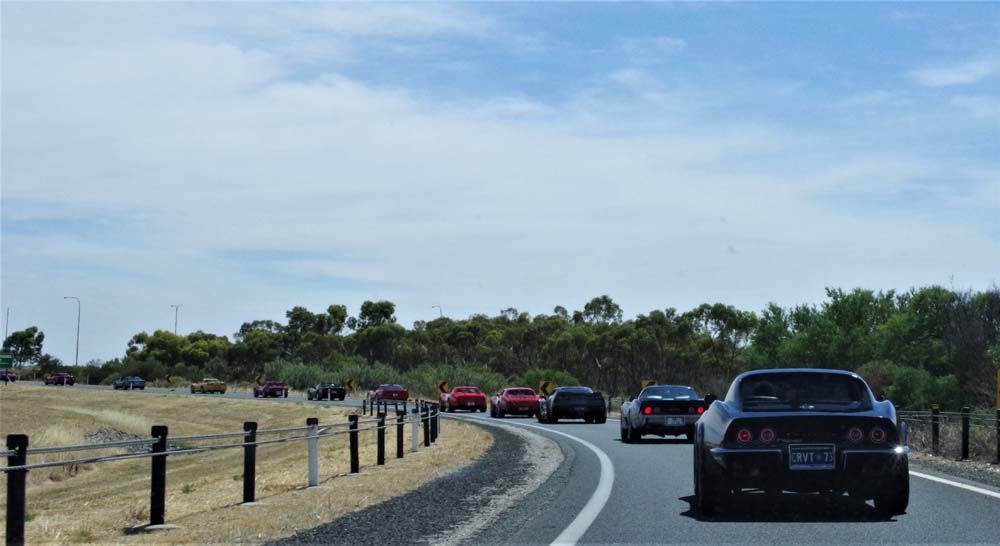The Corvette caravan headed off up the Esplanade to the smiles and waves of the adoring public but without a U turn it was soon replaced by the obligatory C3 fuel stop instead. It’s always C3’s (except for Jim’s famous Nullarbor incident of course), they must have extra small fuel tanks in them.