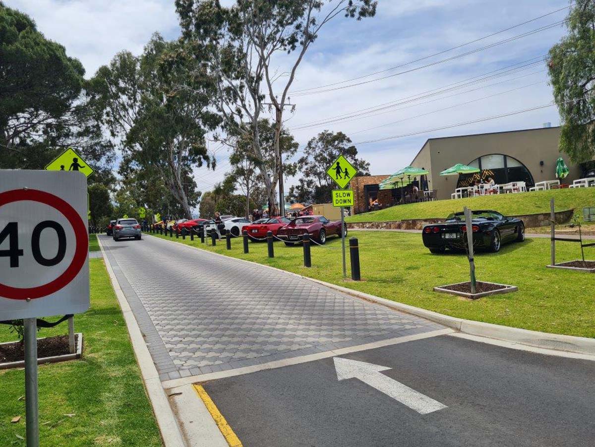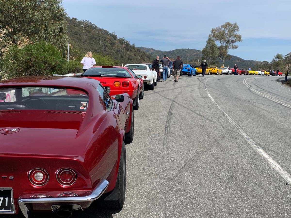 Stopping at chain of ponds so no one would miss the turn off, we then turned onto Tippett Rd then onto Gorge Rd. It is a lovely sight to see a large number of vettes winding through the countryside on a perfect spring day. Time was on our side so l decided to stop at the kangaroo creek dam carpark for photo opportunities, it was tight but we all got to park, stretch our legs and take a few photos. Several motorbikes (Wayne Gardner wannabes) came through past us quite fast, so with that, it was off on the last leg of our run to the Rezz for lunch.