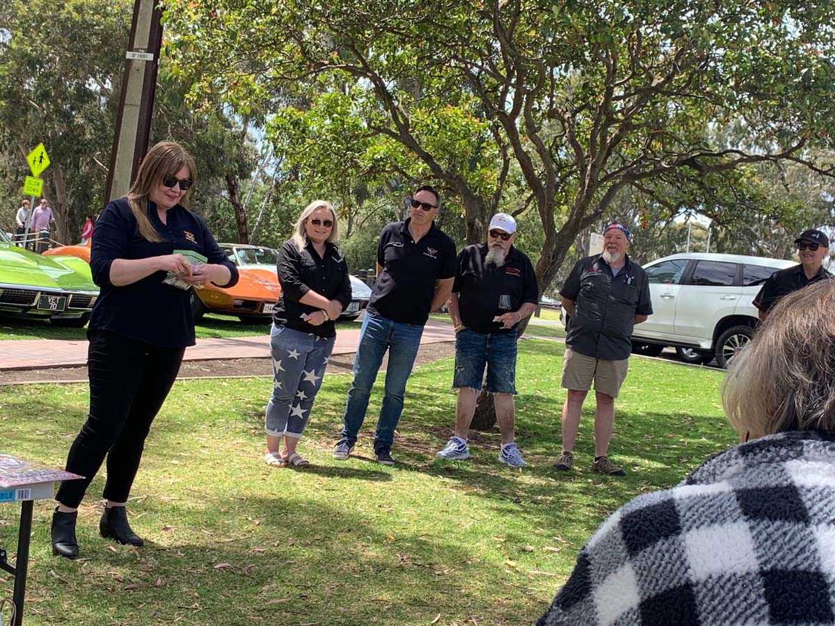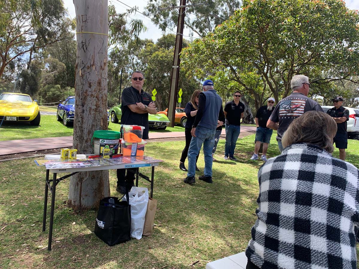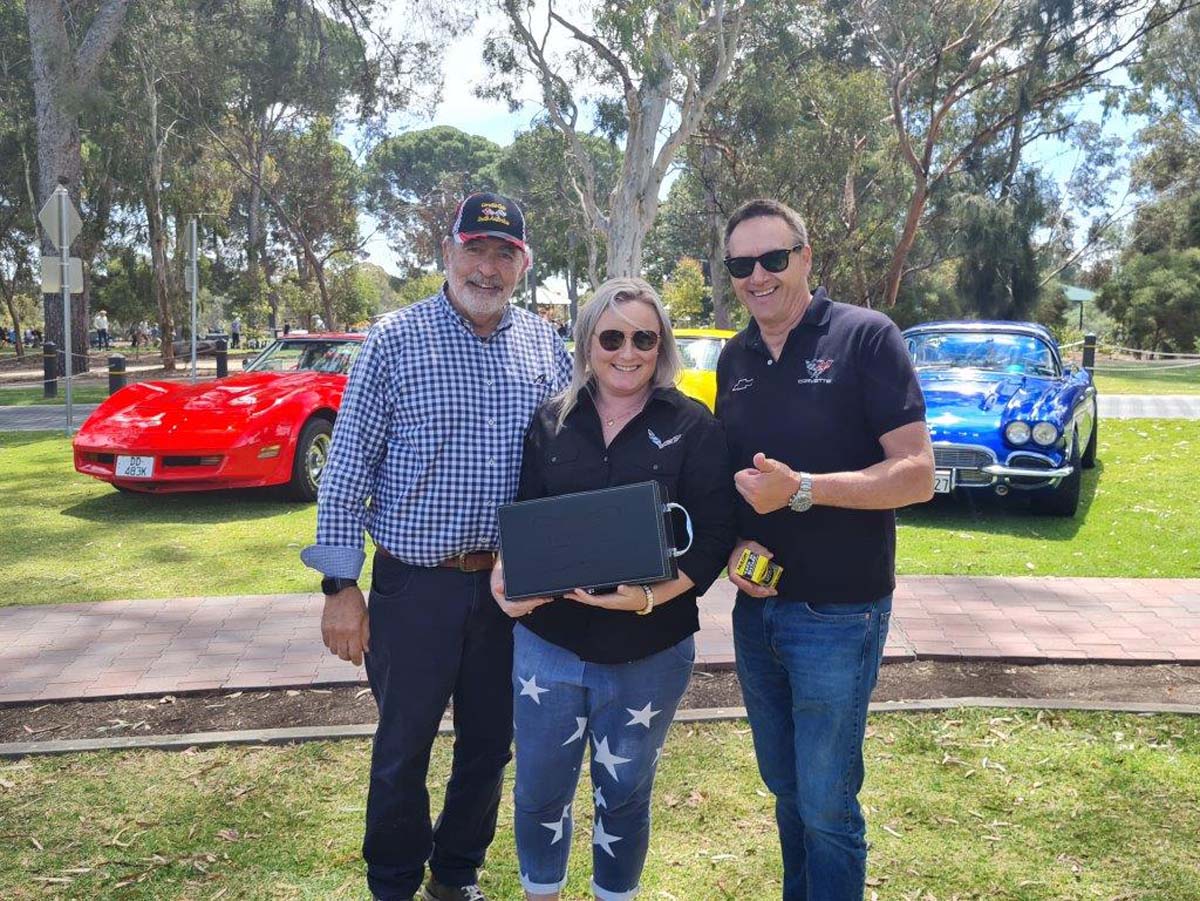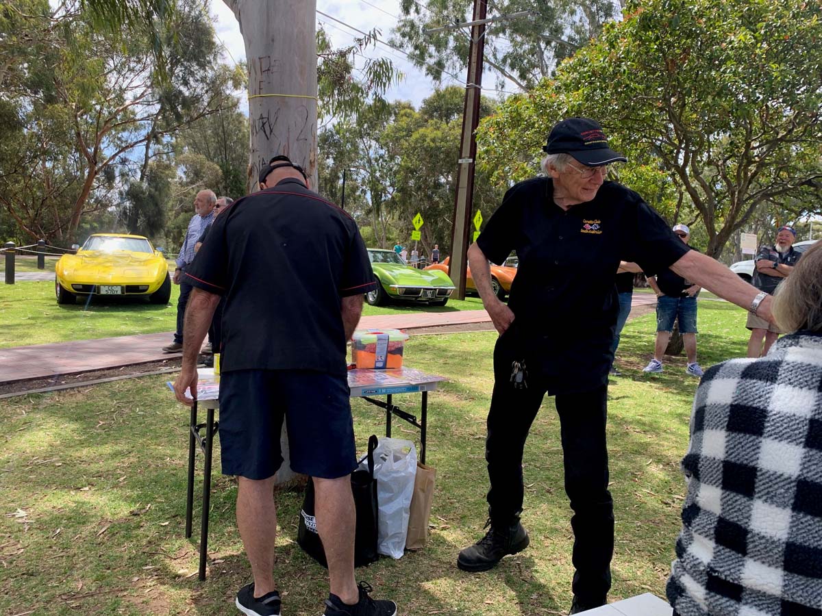 Shirelee conducted the raffle with about 20 prizes on offer for members (car cleaning kits, model Corvettes, garage signs and other goodies) and there will be a few winners using their car cleaning kits already. On behalf of the club, we also presented Fred with a club shirt and a few other goodies for his generosity in hosting us and looking after us on the day, highly possible we could have him as a new member in the near future.