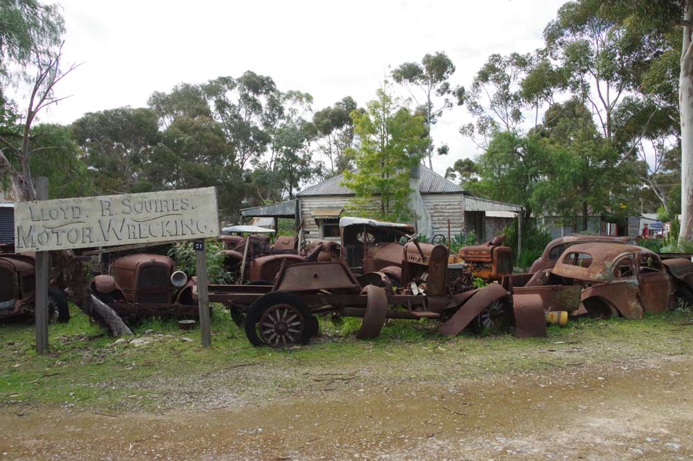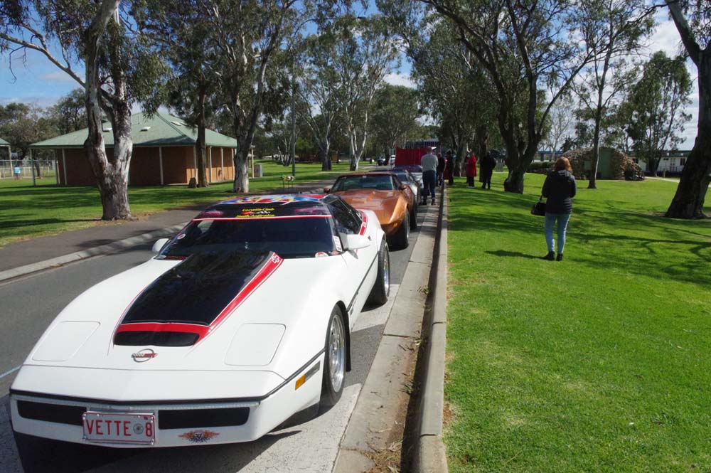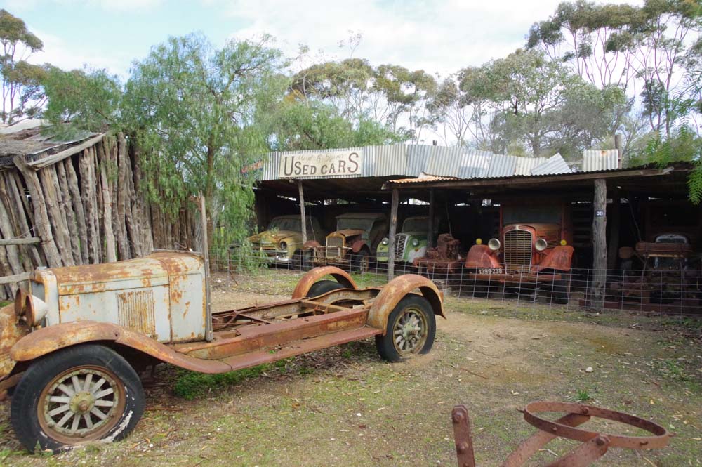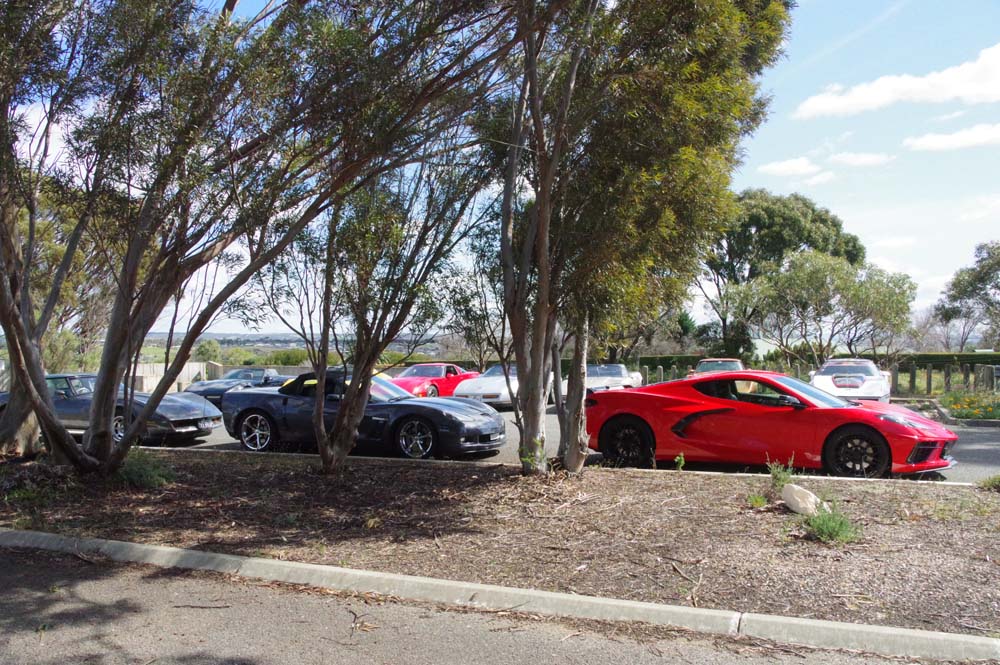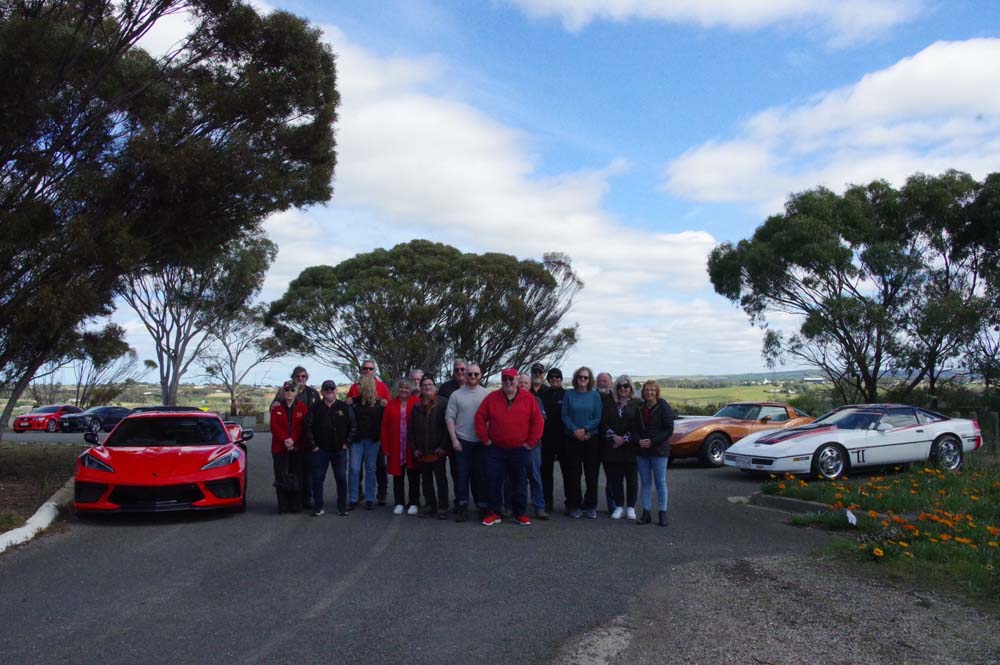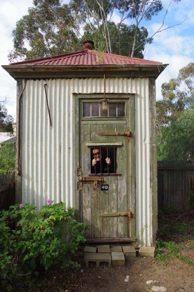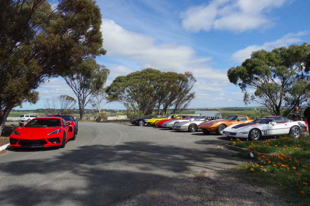 Checking out the cars arriving, I noticed a new Red C8. Now Gary & Cathy were away, & Angelo wasn’t there. Hmm?? It turned out that the newer club members had only picked up their car at 5:00 pm the night before. They decided to join us on our Saturday run. Welcome Graham & Marie Rudloff. These guys are very keen, keen, keen. After the briefing we headed up the freeway, turning off & cruising through the main street of Hahndorf. Anyone sleeping in was woken by 11 Corvettes cruising through their town. We took the Old Princes Hwy through to Murray Bridge, picking up Ruth, Stuart & Serge at the Blob at Mt Barker turn off. Was a beautiful run through the hills on the old road. Basically no traffic, stopped at Murray Bridge by the Bunyip to stretch the legs & check out the river levels & flow. Back on the road, we stopped at Frank Jackman lookout for a photo shoot. Continued on to Tailem Bend Hotel where we met Greg, Chrissy, Rob Butler & Karen for lunch. After a leisurely lunch most of us continued to Old Tailem Town which is a recreation of the early Aussie Town layout. It has been put together over many years by a family that wanted to preserve history. It is worth a visit. As you can see by the photos, it’s not just old buildings, cars, memorabilia; you will also see a prisoner & a dunce there for entertainment.