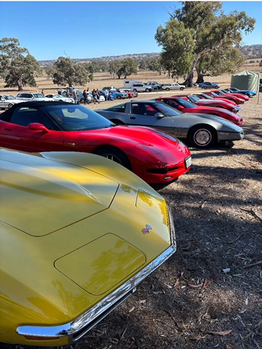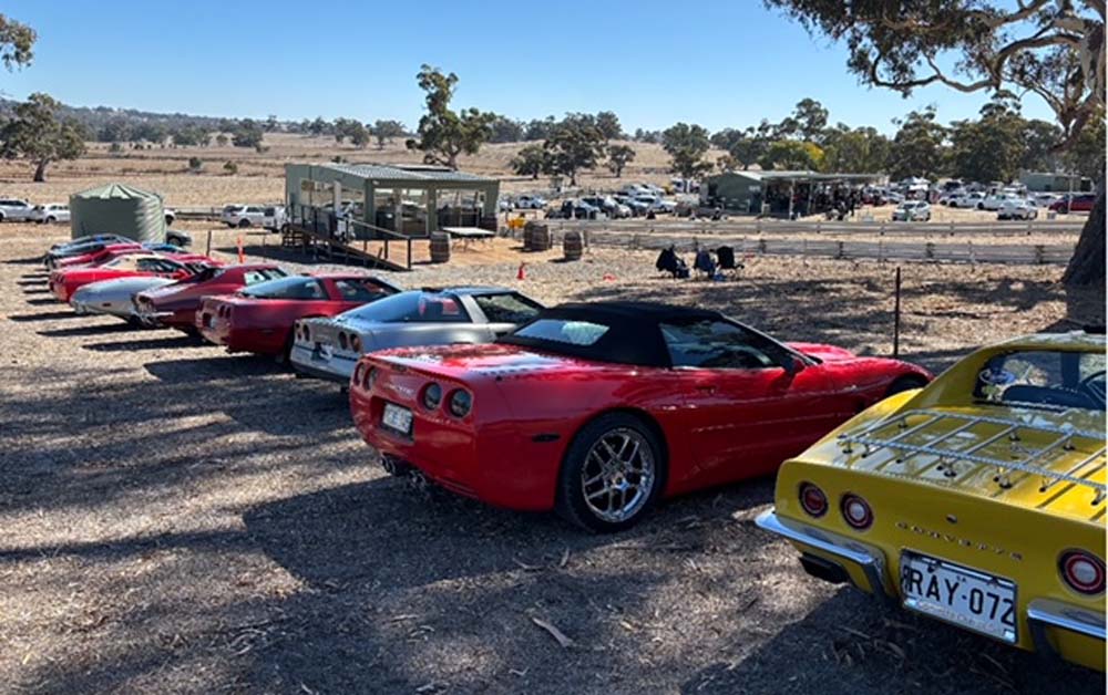 The day started a little fresh, but with the sun shining and blue skies ahead the early start was easy, driving down to OTR at Bolivar. This was the meeting point for 11 other Corvette owners that were ready for some highway cruising and something a little different to other club runs, involving the Sporting Car Club of SA. The route was set through Tanunda for a pickup of one of our regional members and then on to Angaston and Collingrove Hill climb in the Barossa Valley for a variety of Motorsport viewing including some track time experience for those who participated. That all too familiar Chevrolet noise was happening just as we arrived with our new club president Sean warming up the C4 affectionately known as the Black Bitch for a climb by making lots of free revving noise, burning rubber in the pits and letting all the club members know he meant business. It was by far the best sounding car in the field and made the rabbits shake in their burrows.