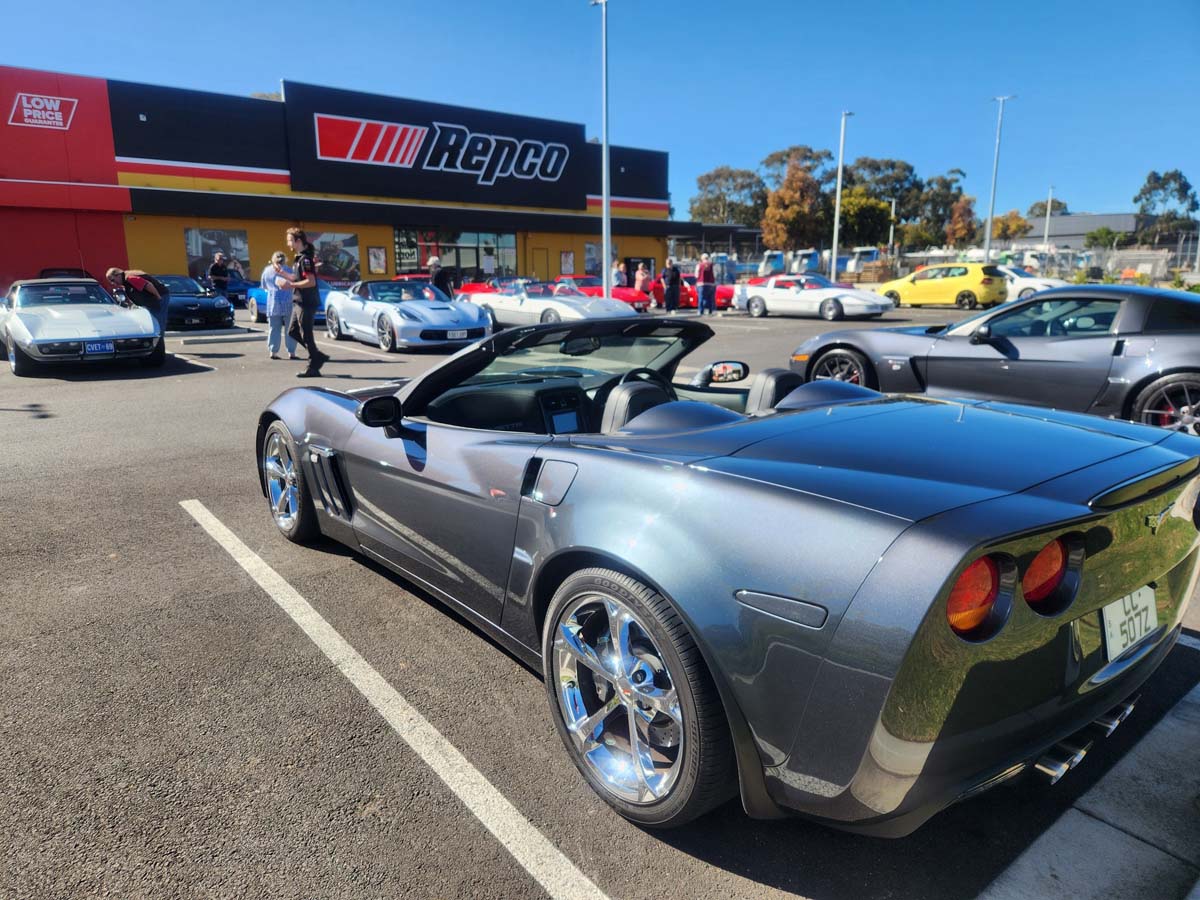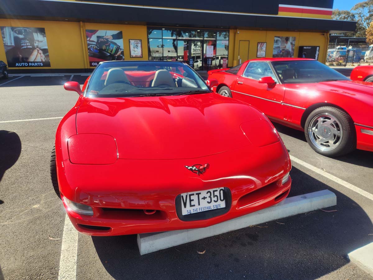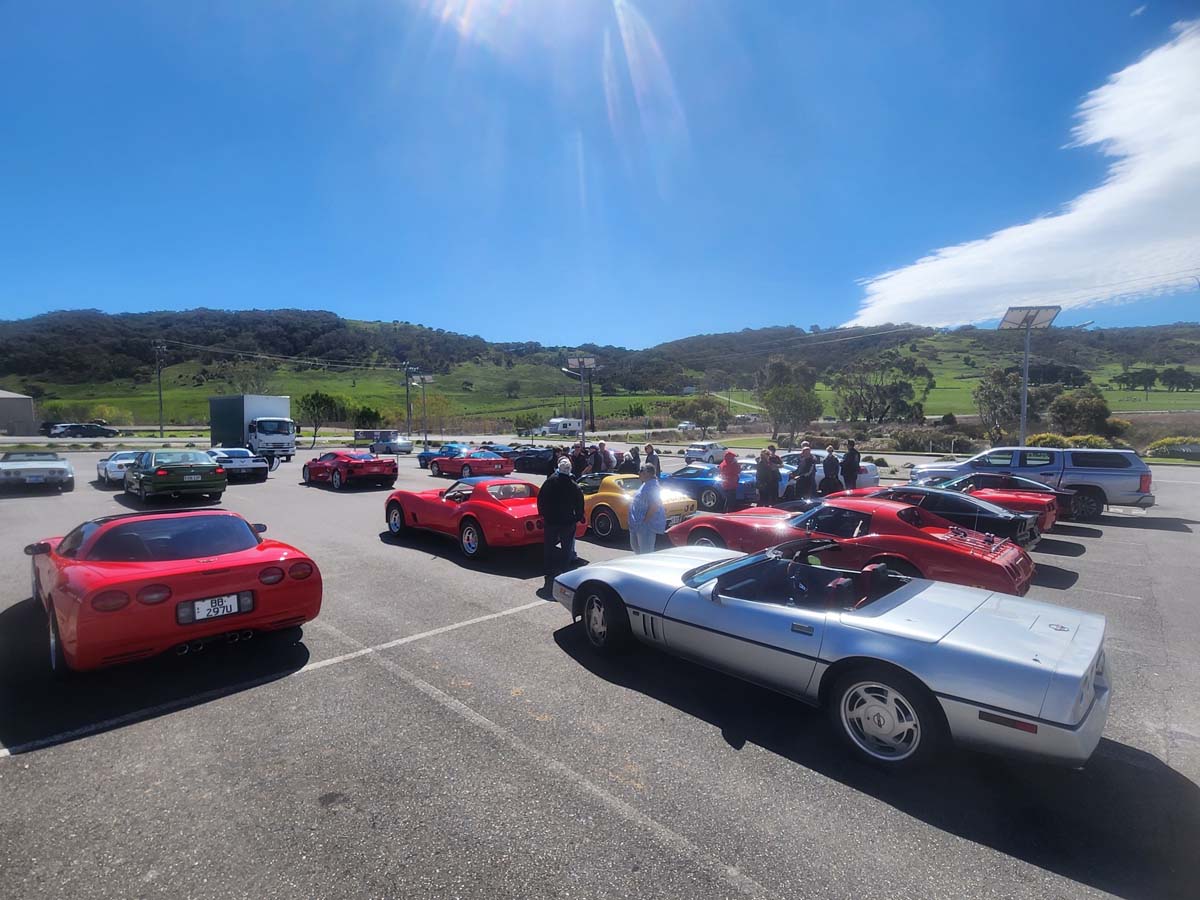 21 Corvettes lined up this morning for the Graham Johns Memorial run from Repco Marion to The Bridge Hotel Langhorne Creek via Mt Compass.
