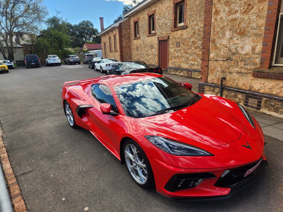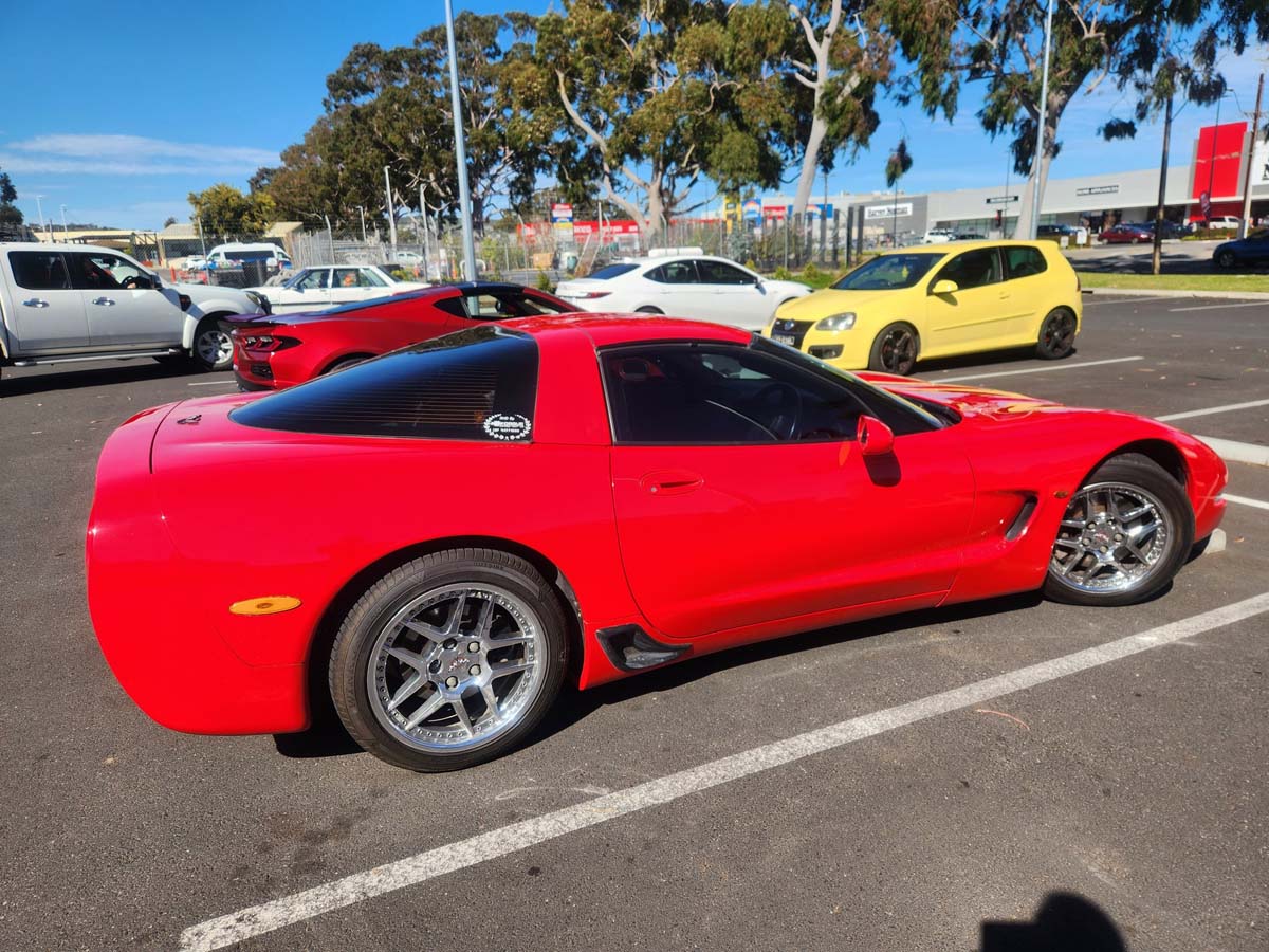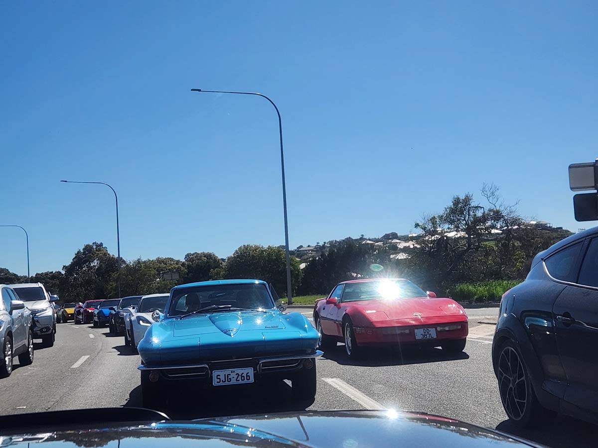 21 Corvettes lined up this morning for the Graham Johns Memorial run from Repco Marion to The Bridge Hotel Langhorne Creek via Mt Compass.