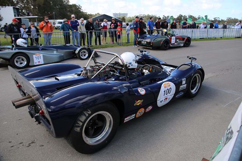 On entry marshals guided us to the lawn area alongside the road, [used by contestants on the day to and from the track], and placed us in the second row. The photos were taken prior to the public being admitted, hence the minimum number of people in photos. As the gates opened, traffic in and around the cars grew, unfortunately the crowds did not bring a rise in temperature with them, so the air was still cool to “bloody” cold prompting Steve (yes in shorts) to put his roof up and sit in the warmth of the car for quite some time.