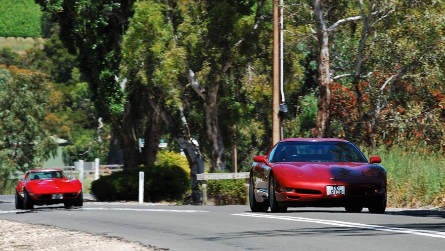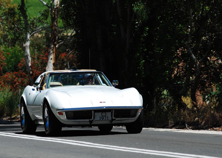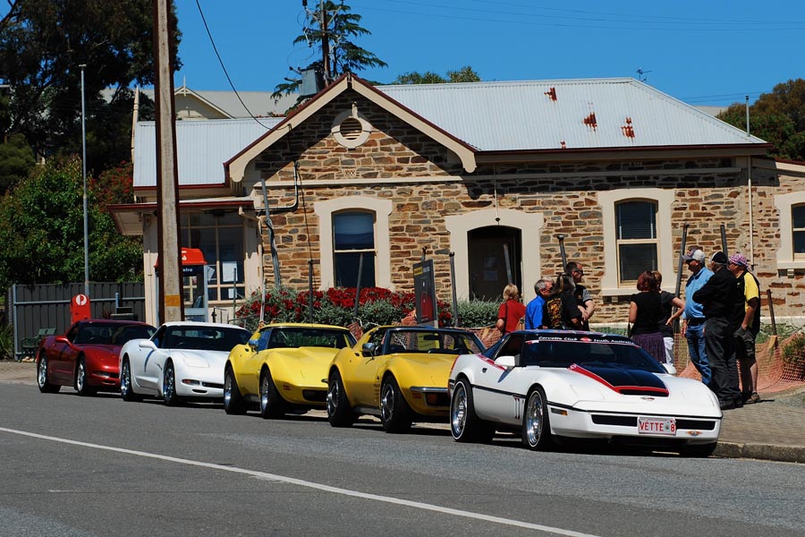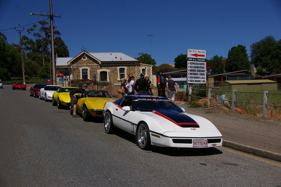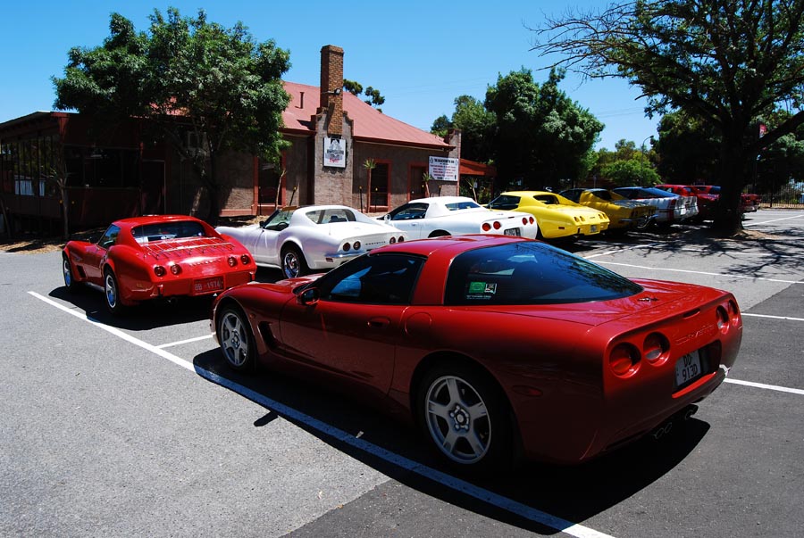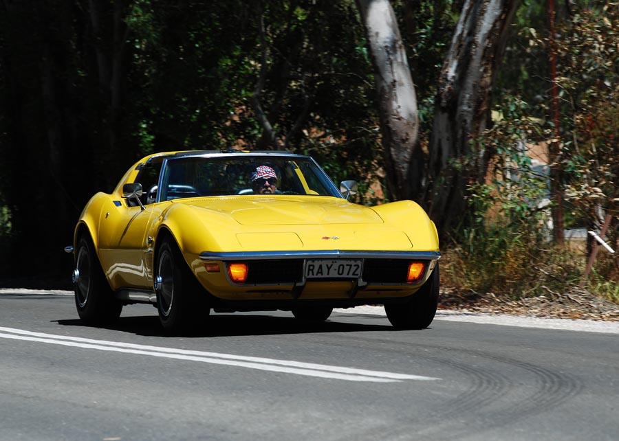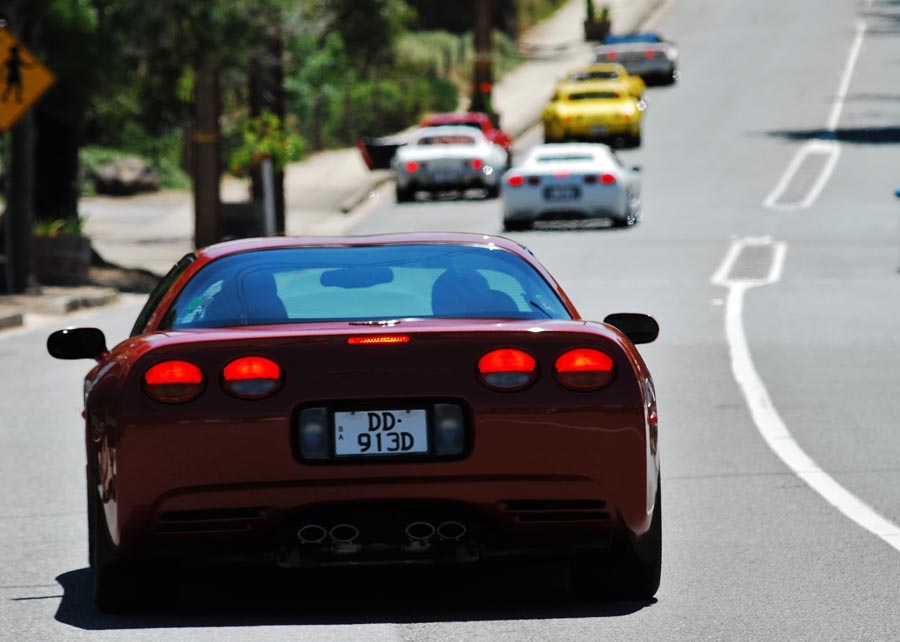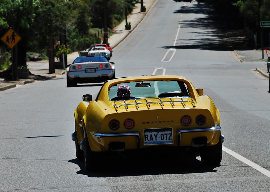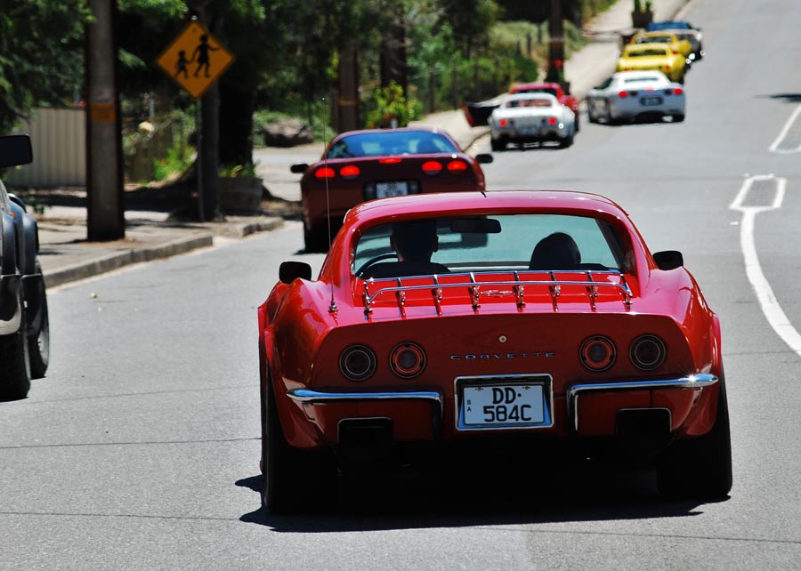 9 Corvettes rumbled up Greenhill Rd and into the hills. This part of Greenhill Rd is popular with cyclists so as responsible motorists we all ensured we gave them the 1.5m gap when passing as required by law. I'd hate to have one run into me. Fibreglass is difficult to fix.