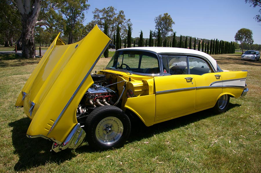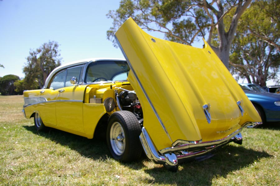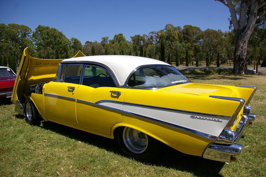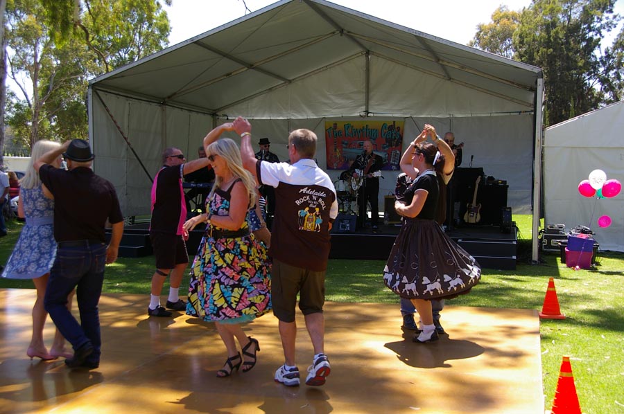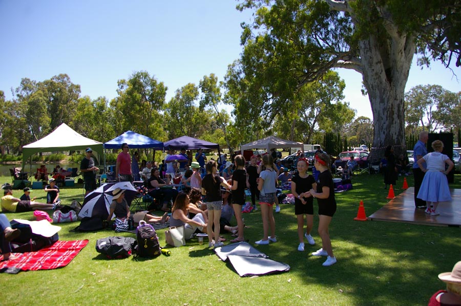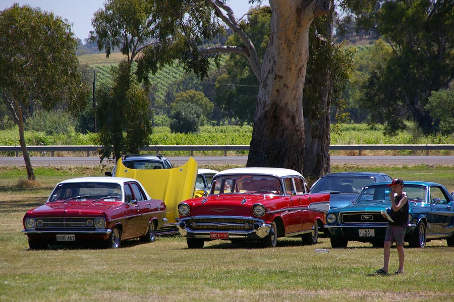 14 cars from our club arrived at the Castle Plaza Shopping Centre for the 'Cruise 4 Kids' charity run. This was open to all car clubs or like minded people who wished to join. The idea was to cruise from the shopping centre to Serafino's at McLaren Vale for a day at the lake with various Rock & Roll bands & a dance floor set up. We found a perfect spot under a huge gum tree right next to the lake where we could hear the music & see the dance floor, but still be in the shade as it topped 36 degrees. Plenty of food vans with variety, bar facilities & several trade / clothing stalls Selling 50s to 60s clothing & accessories, as people know 1 of my weaknesses. This was a top day with good rock & roll music, cars & most importantly good people to enjoy it with. Lyn & I would like to thank those from our club who attended & supported the cause. Article by Peter McBride, Photo's by Greg Woods & Peter McBride