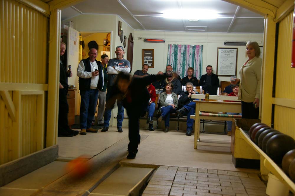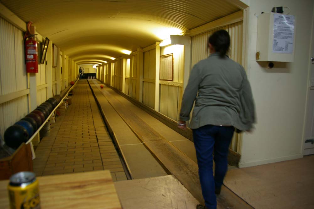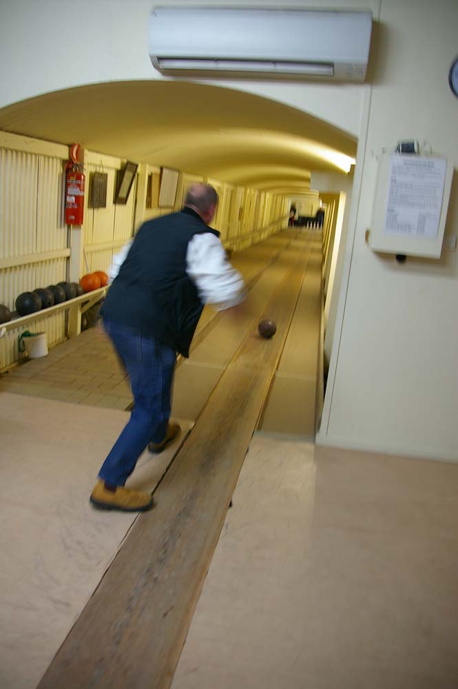 German bowls, bowling a wooden bowl down an uneven Lane at 9 pins & the scoring is totally German to me.