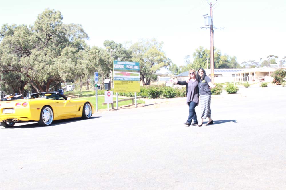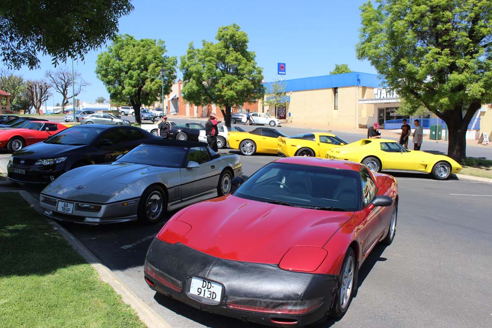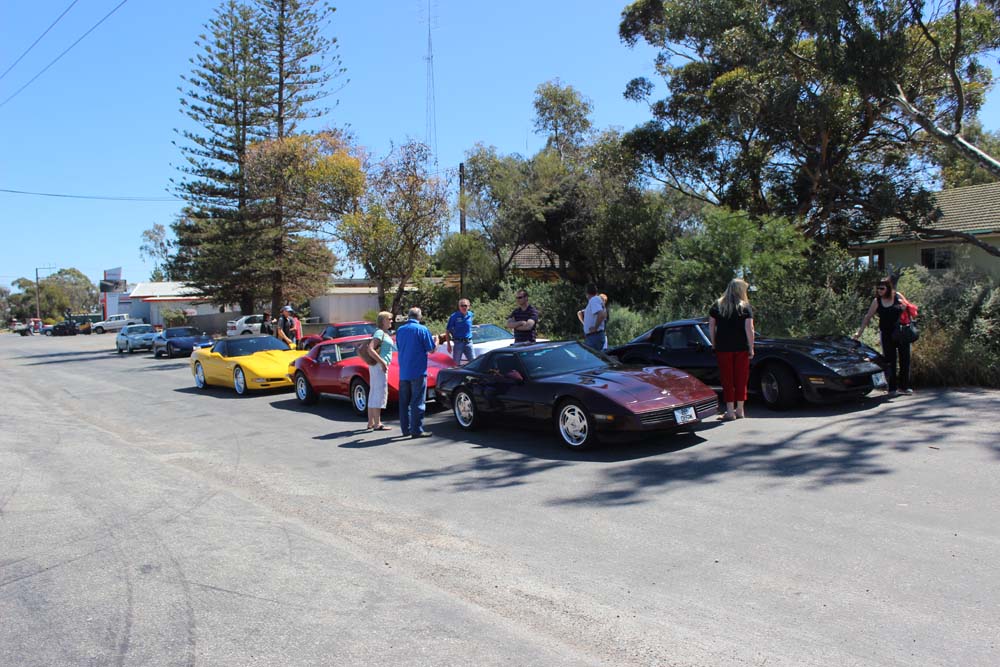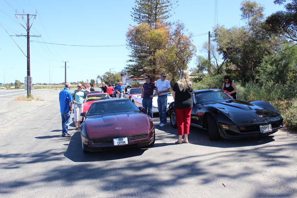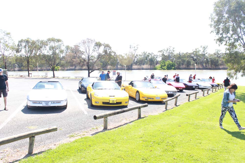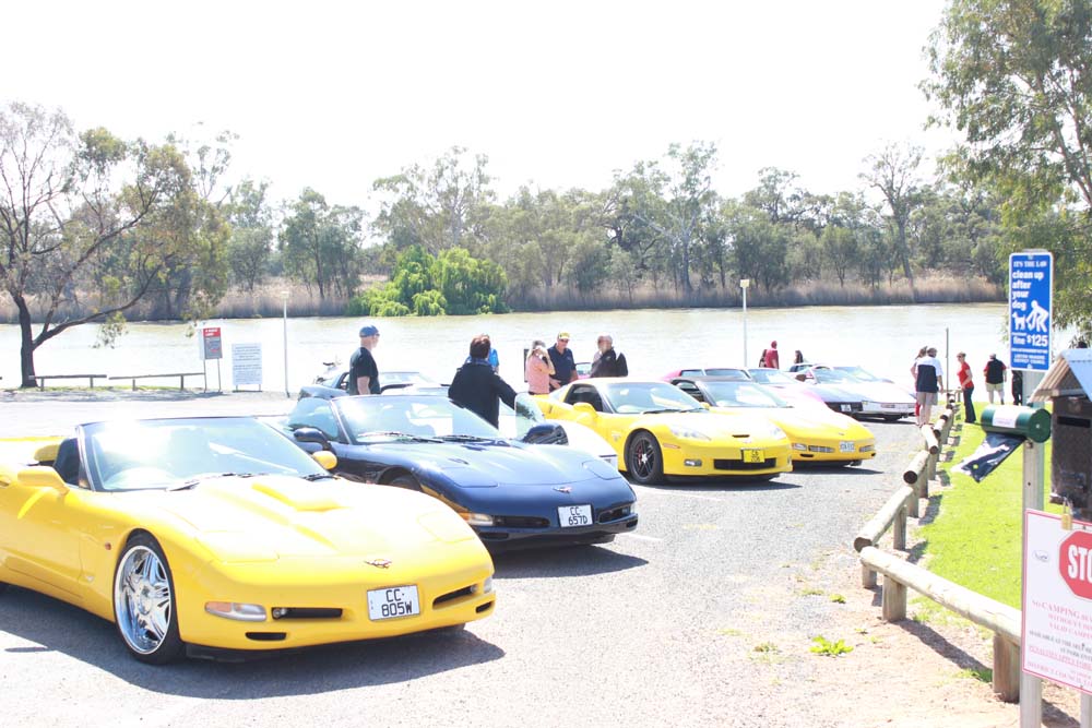 Sunday morning saw yet another beautiful day greet us. Tony was our cruise captain for the day and led us off towards Moorook. A total of 14 Corvettes rumbled out of the golf club including the cars of Jim & Catherine and Goof & Mel who had decided to join us for the day. We were also escorted by Shaun and Kirsty in their Nissan X-Trail (they didn't want to tempt fate by taking the C4 back to the Riverland where it had suffered engine troubles 2 years earlier!). As we pulled into Moorook the usual crowd of onlookers began to gravitate around the cars and after a short break we headed on towards Loxton our lunch destination..…yes more eating and drinking required. Following lunch we had a leisurely cruise back to Renmark with a number of us stopping at the 2nd hand dealers in Paringa along the way. Back at the golf club our members began their usual ritual of congregating in the nearest car park and talking, we also had time to play Kevin's favourite party game "The BBQ Game". This was soon followed by our actual BBQ, thanks to all those involved in organising this in particular Rob and Kevin who demonstrated their culinary skills at the hotplate. The rest of the evening was spent sharing stories and having a few drinks with Rob having a particularly interesting story about the side effects of certain herbal remedies. We must have been making too much noise at one stage as a nearby kookaburra let out it's distinctive cry, perhaps it thought that its territory was been invaded by Karen who was also cackling quite well by that stage.