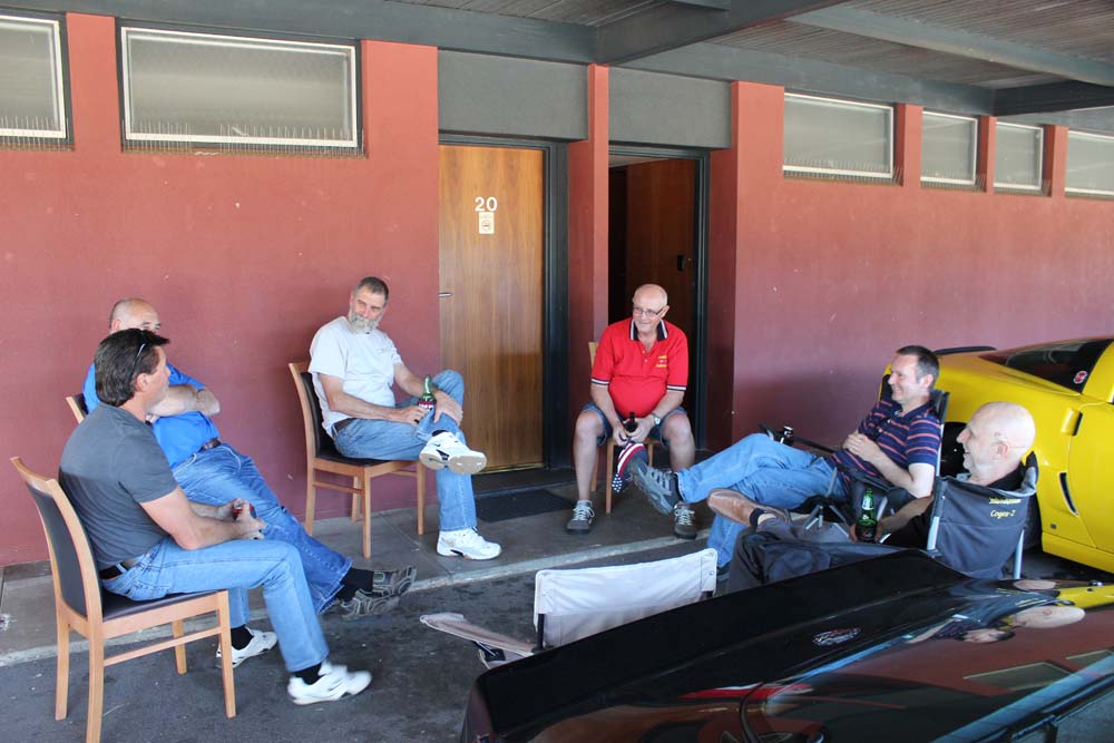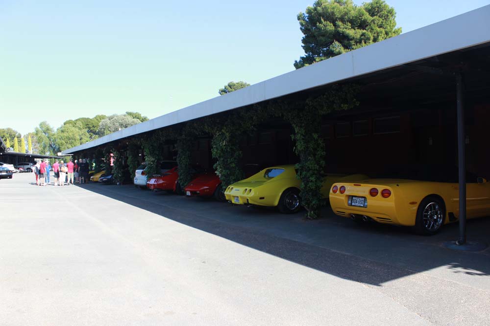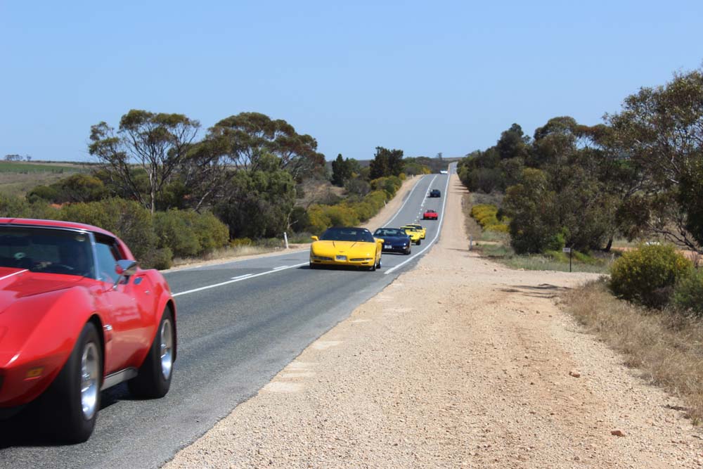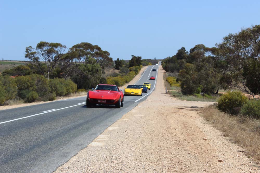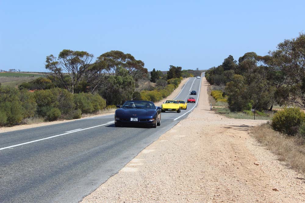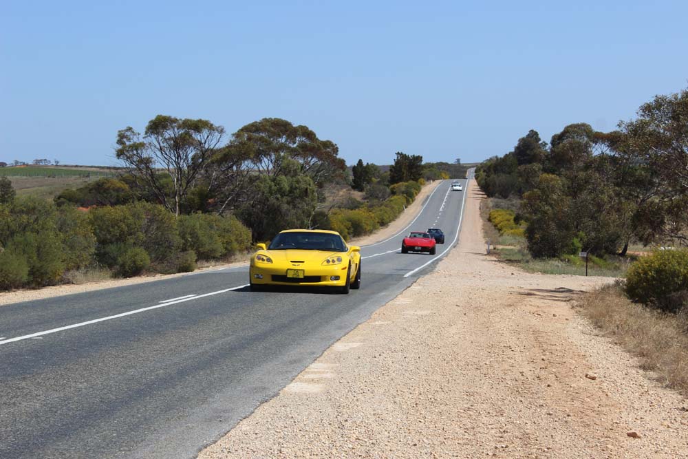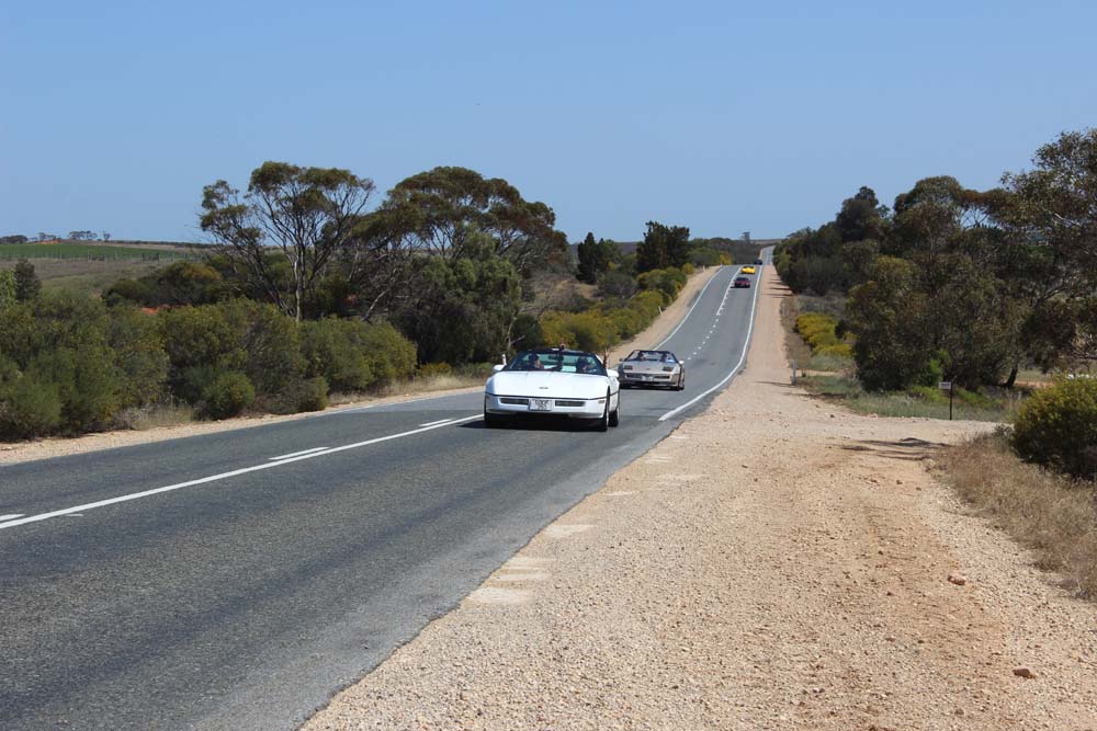Sunday morning saw yet another beautiful day greet us. Tony was our cruise captain for the day and led us off towards Moorook. A total of 14 Corvettes rumbled out of the golf club including the cars of Jim & Catherine and Goof & Mel who had decided to join us for the day. We were also escorted by Shaun and Kirsty in their Nissan X-Trail (they didn't want to tempt fate by taking the C4 back to the Riverland where it had suffered engine troubles 2 years earlier!). As we pulled into Moorook the usual crowd of onlookers began to gravitate around the cars and after a short break we headed on towards Loxton our lunch destination..…yes more eating and drinking required. Following lunch we had a leisurely cruise back to Renmark with a number of us stopping at the 2nd hand dealers in Paringa along the way. Back at the golf club our members began their usual ritual of congregating in the nearest car park and talking, we also had time to play Kevin's favourite party game "The BBQ Game". This was soon followed by our actual BBQ, thanks to all those involved in organising this in particular Rob and Kevin who demonstrated their culinary skills at the hotplate. The rest of the evening was spent sharing stories and having a few drinks with Rob having a particularly interesting story about the side effects of certain herbal remedies. We must have been making too much noise at one stage as a nearby kookaburra let out it's distinctive cry, perhaps it thought that its territory was been invaded by Karen who was also cackling quite well by that stage.
