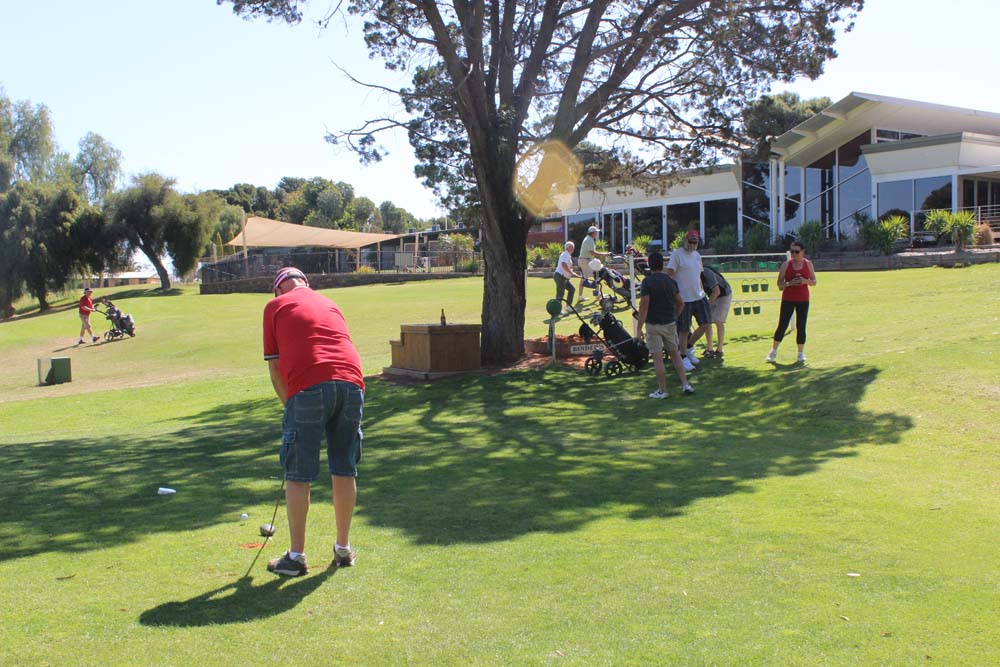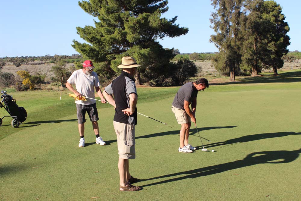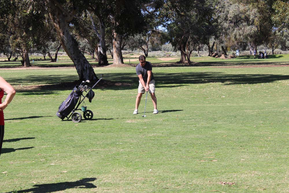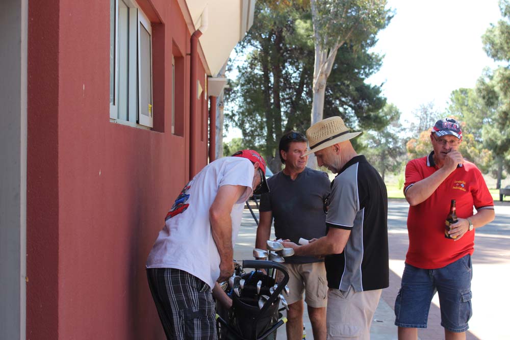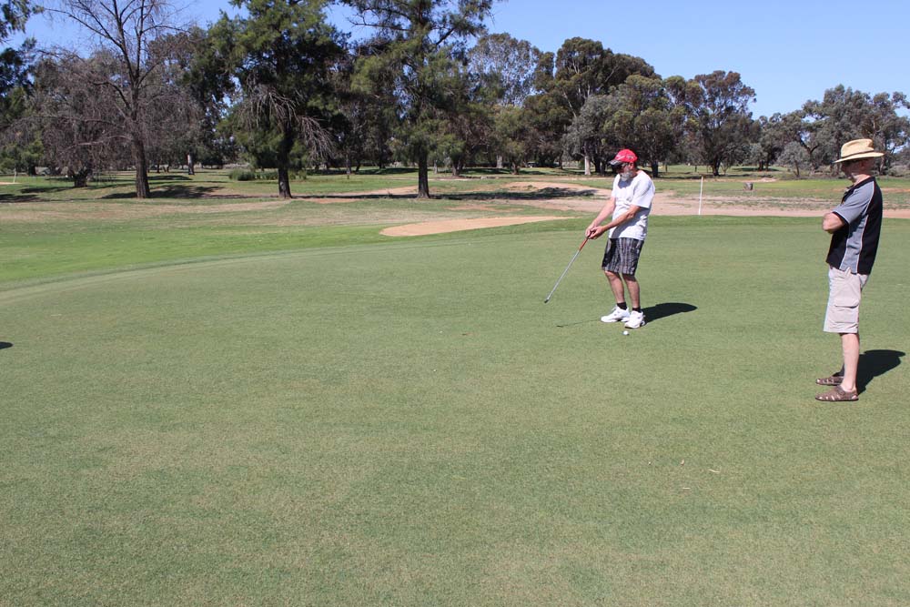 On Saturday we awoke to perfect weather. With no formal plans for the day it was a chance for everyone to kick back and relax. The calm didn't last all day though as a golfing challenge was soon conceived. It was the Mick's vs Kevin and Tim, the competition was intense and despite some successful attempts at cheating by Kevin he and Tim were unable to defeat the superior skills of the Mick's on the day. Saturday night saw us all head into Renmark to have dinner on the riverfront at the local pub. It was satisfying to see Tony follow club protocol and intentionally force us to all perform a u-turn on the way to the pub rather than going the most direct route. After a filling meal a number of us sat outside to enjoy the warm spring evening. The local bugs also decided it was a nice night to be out but little did they know that their lifespan would be decided by how quick either Karen or Mick's reactions were (Mick was trying to squash them, Karen was trying to save them).