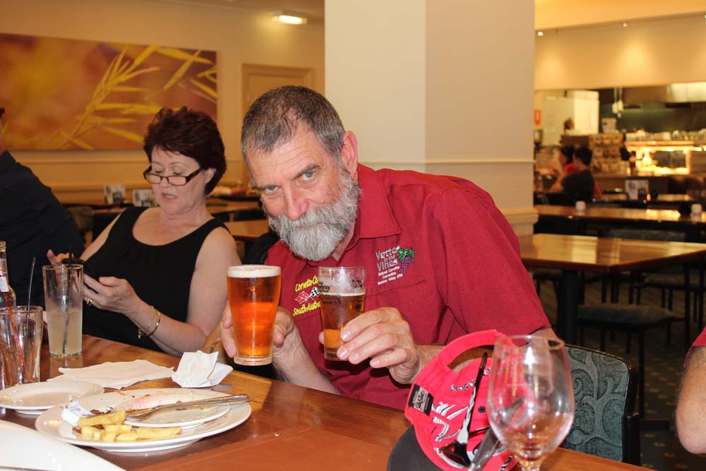 The long weekend started early for a number of our members as they decided to head off towards Renmark on Friday morning. Unfortunately any chance of having a traffic free run to the Riverland were soon dashed as the usual myriad of cars towing caravans, boats, camper trailers etc converged on the Sturt Highway in search of some rest and relaxation. Lunch time soon arrived and a stop in Waikerie was a welcome break from the building volume of traffic. We headed off again towards our final destination for the day..…the Renmark Golf and Country Club. After checking in and making ourselves at home we spent a few hours relaxing and telling a few yarns. Tony and Fay made a fashionably late entrance having wanted to take time to try out their newly acquired battery booster…..yes that little power pack will turn over a 454 no problems! Friday night's dinner was held at the Golf Club which put on a great spread for us.