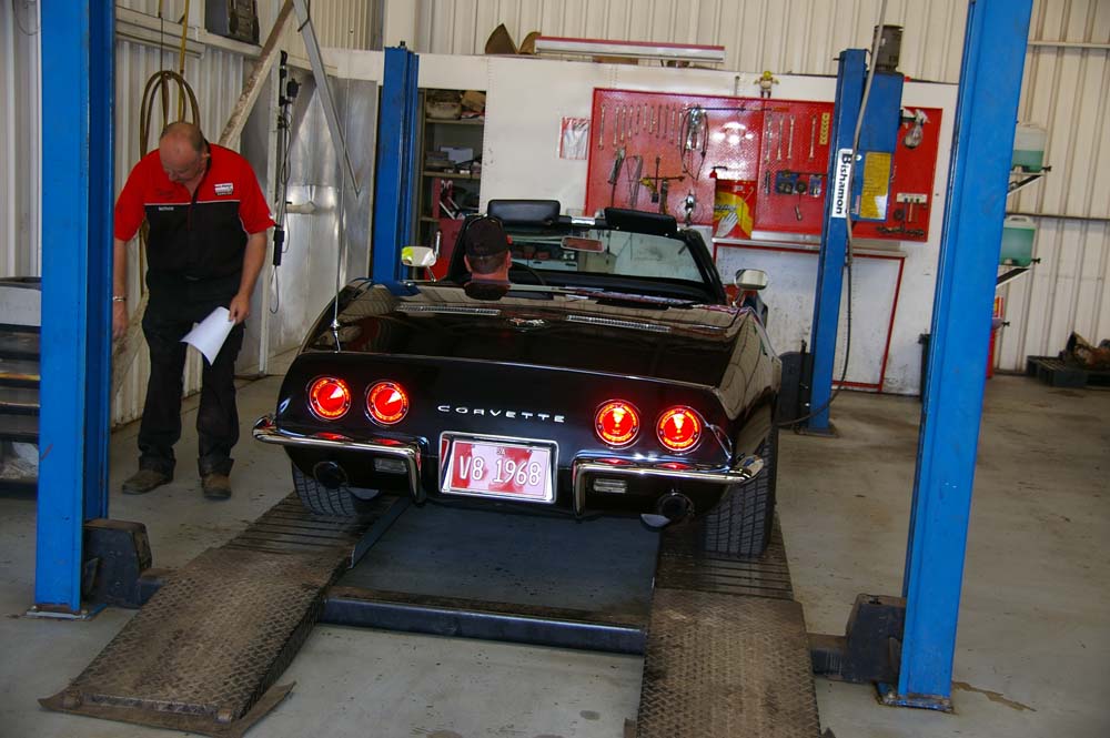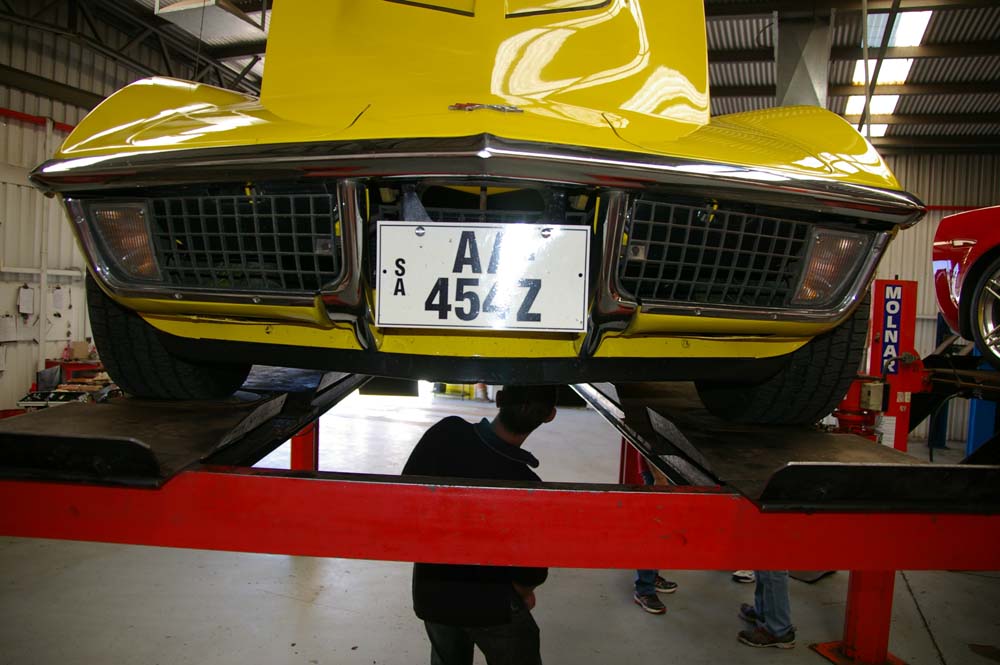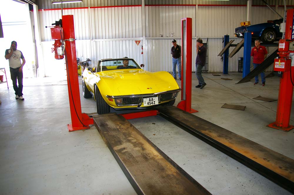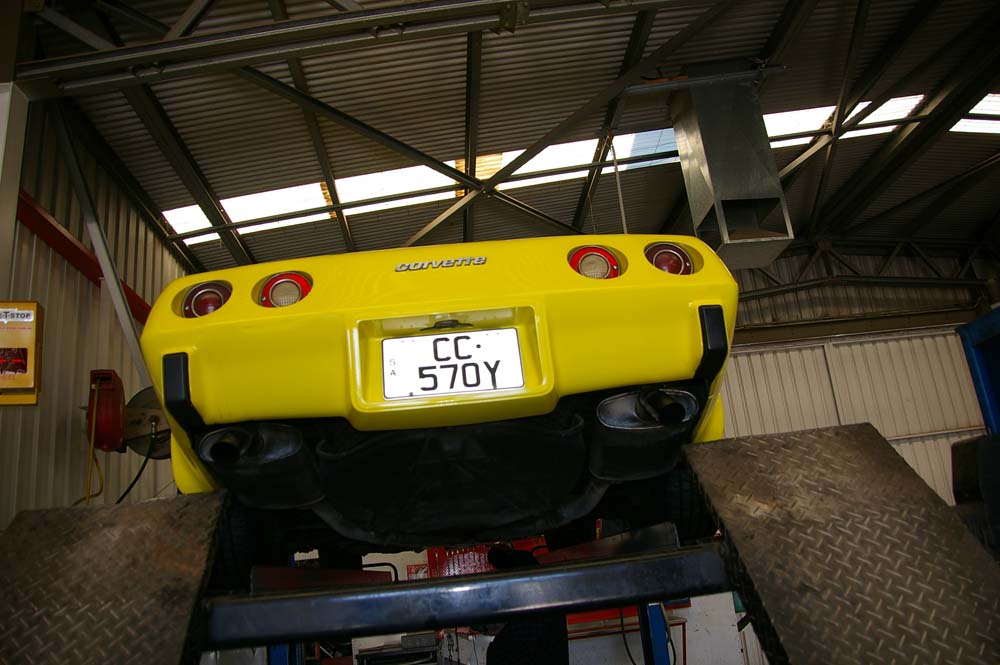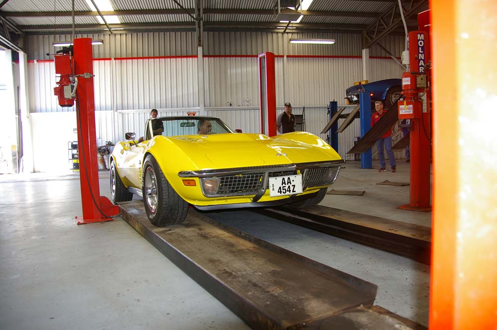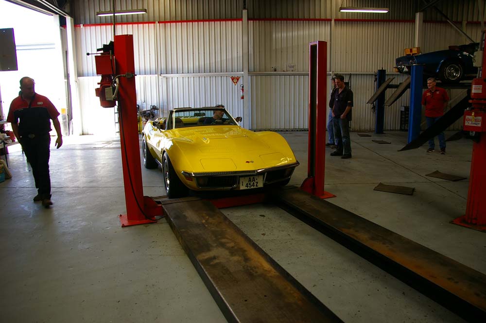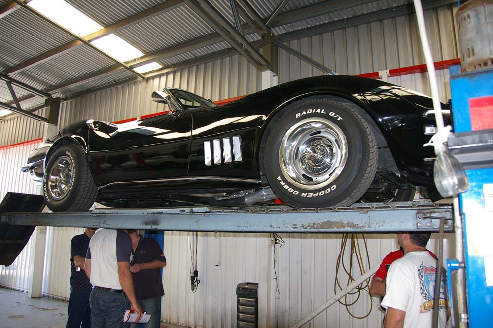 Thanks to Nathan at The Engine Bay the Corvette Club was able to take our vettes down & for those who do not have a hoist were able to get our cars up & check it out.