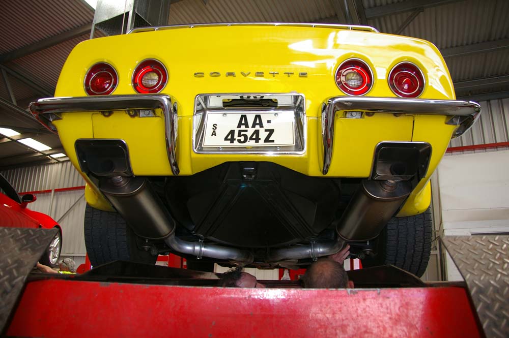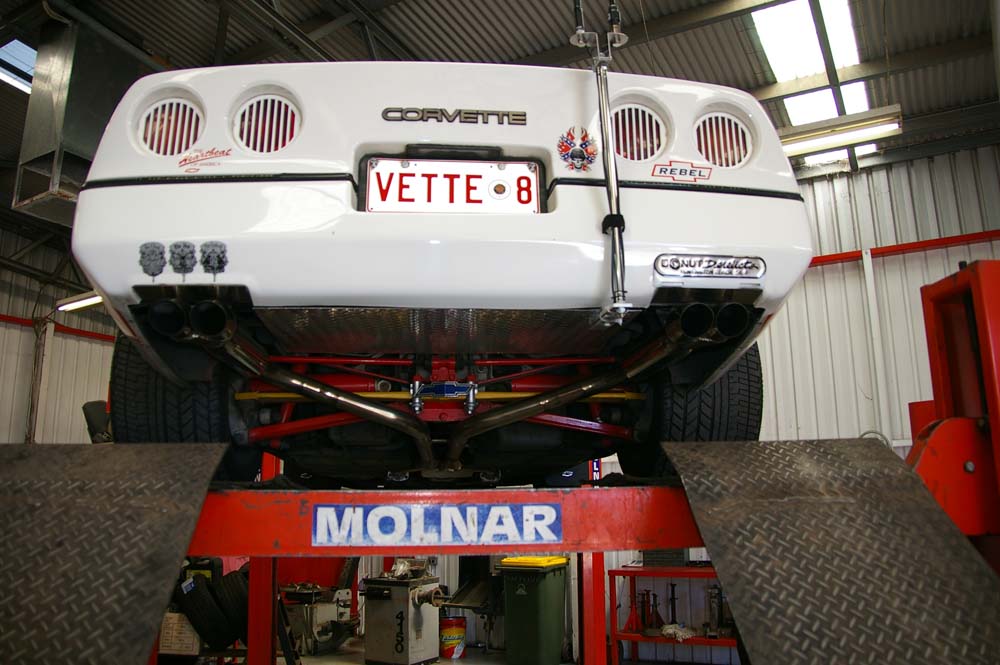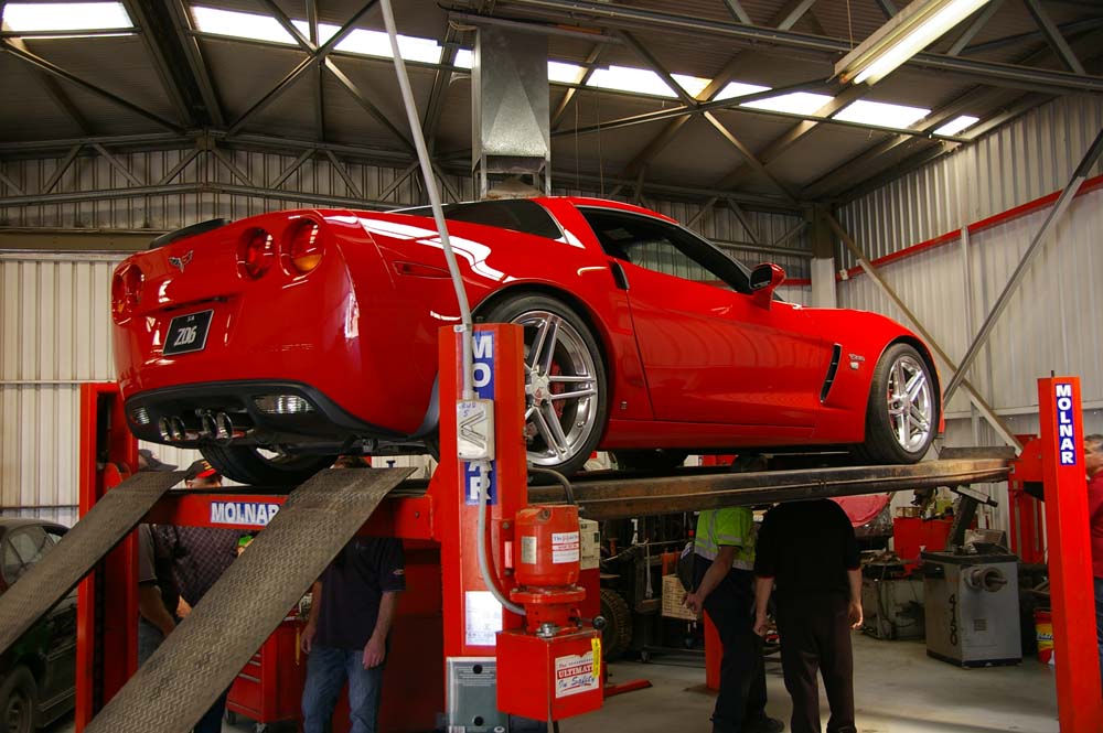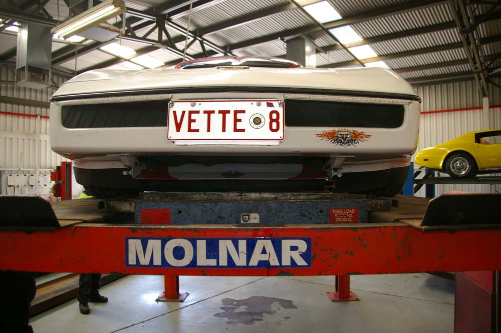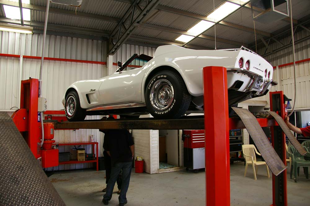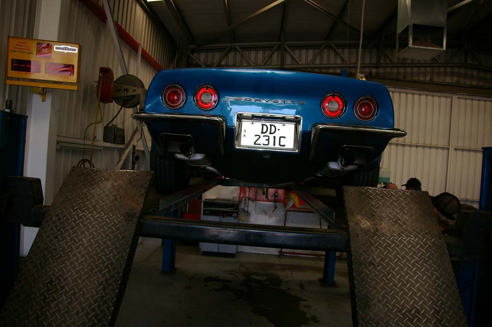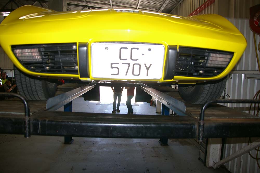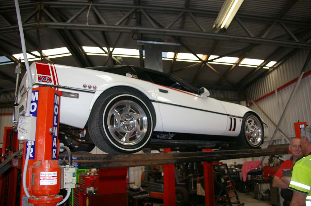 Thanks to Nathan at The Engine Bay the Corvette Club was able to take our vettes down & for those who do not have a hoist were able to get our cars up & check it out.