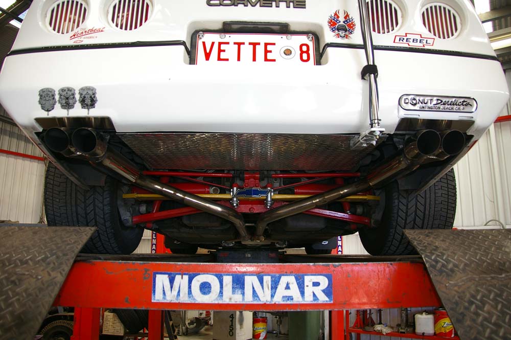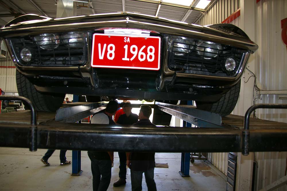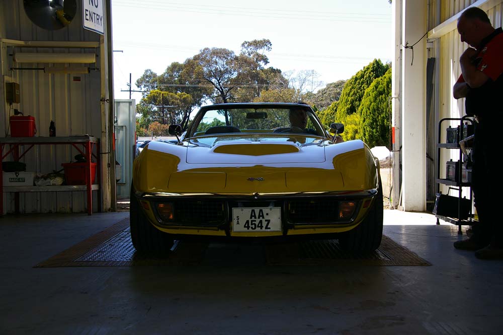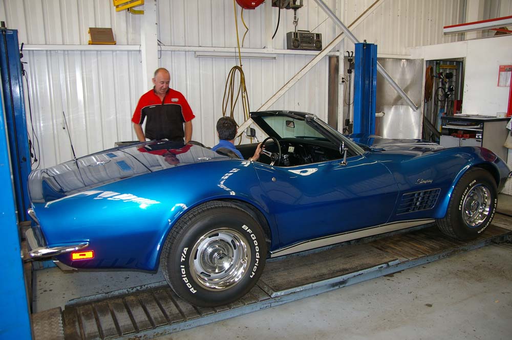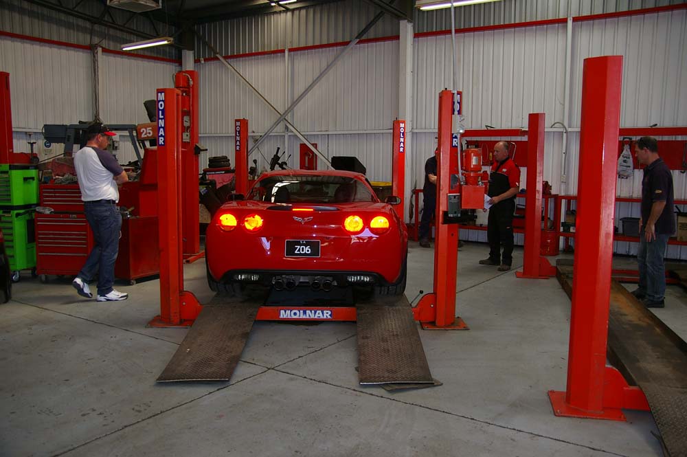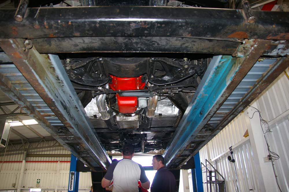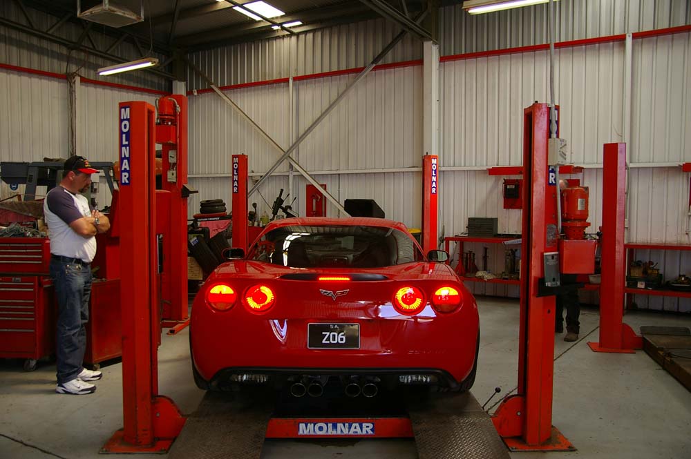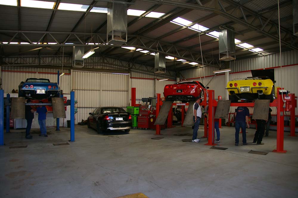 Thanks to Nathan at The Engine Bay the Corvette Club was able to take our vettes down & for those who do not have a hoist were able to get our cars up & check it out.